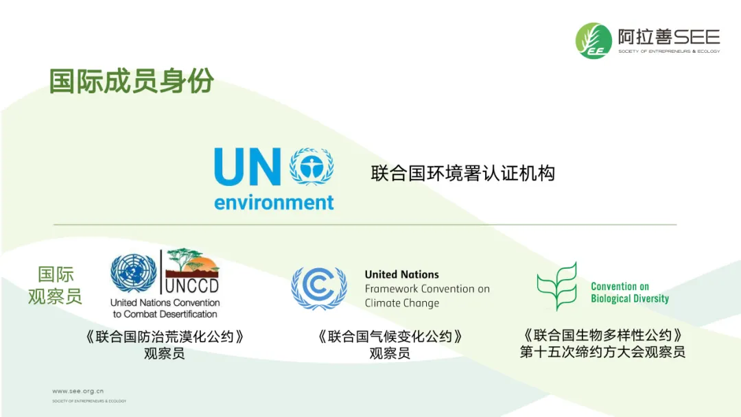 阿拉善SEE生态协会成立于2004年,由近百名企业家在内蒙古阿拉善腾格里沙漠发起。是中国首家以社会责任(Society)为己任,以企业家(Entrepreneur)为主体,以保护生态(Ecology)为目标的社会团体。