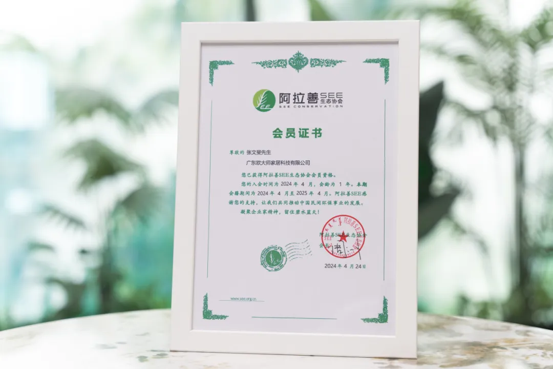 欧大师门窗始终将秉持着三个有利于——利他人、利社会、利自然。此次荣幸加入阿拉善企业家环保基金会,不仅是对其长期以来坚持的环保理念的肯定,更是对其积极履行社会责任的深度认可。未来将进一步投身环保事业,以实际行动推动社会的可持续发展,为构建一个更加绿色、和谐的世界贡献力量。