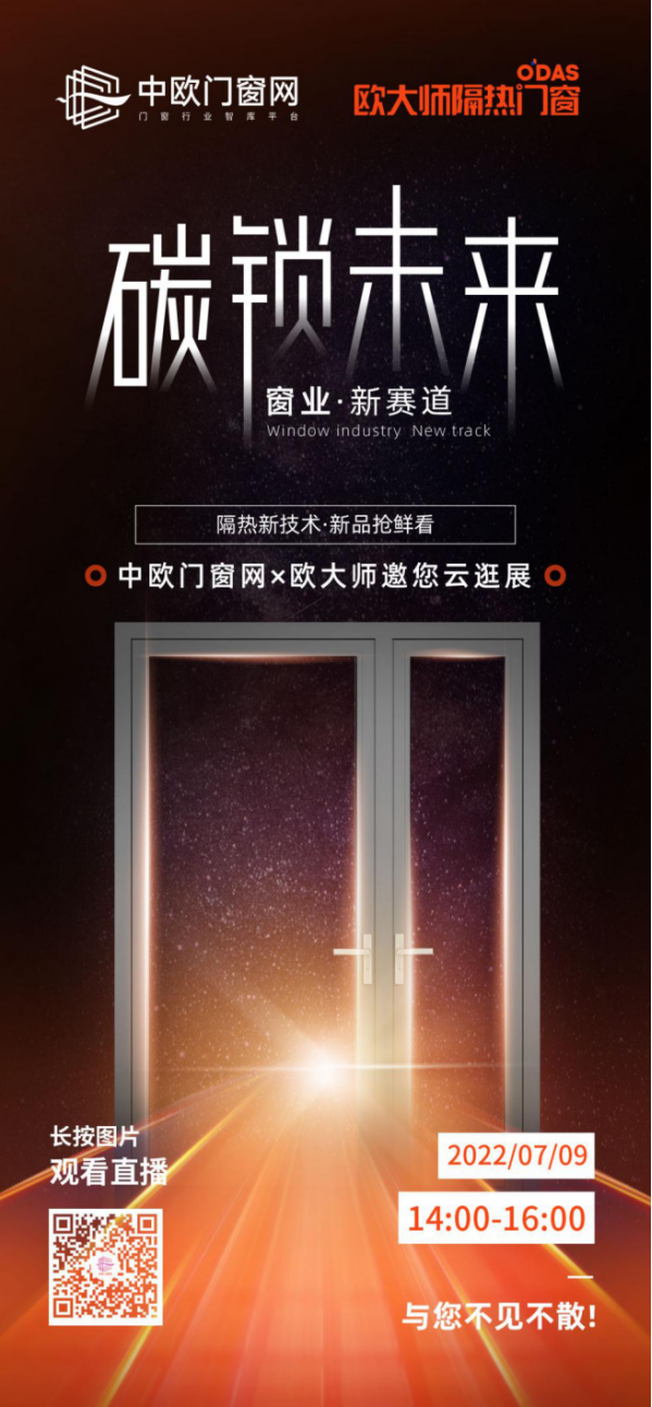 7月9日下午14:00-16:00在中欧门窗网视频号、7月10日同一时间在欧大师隔热门窗官方视频号进行直播,我们约定您!