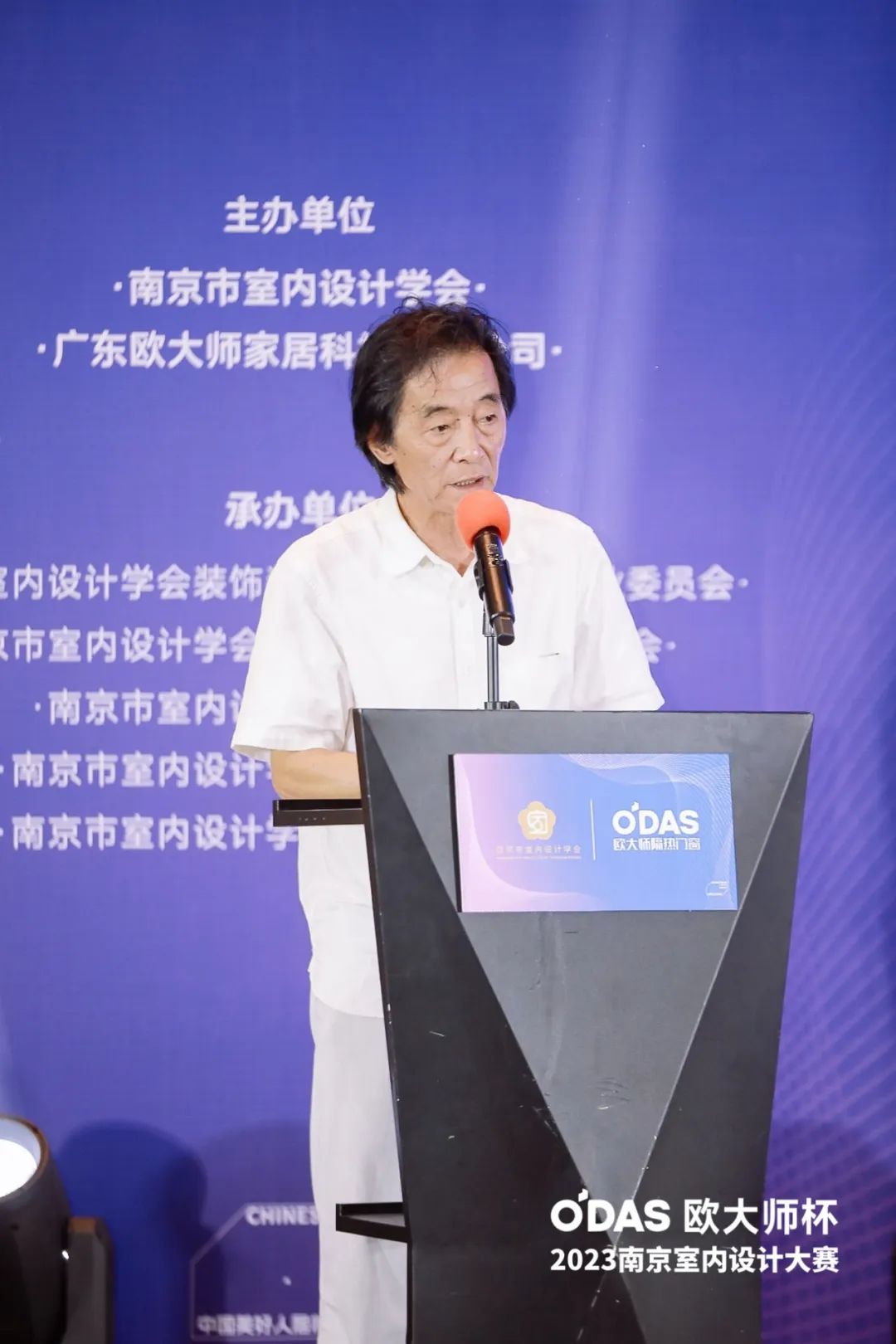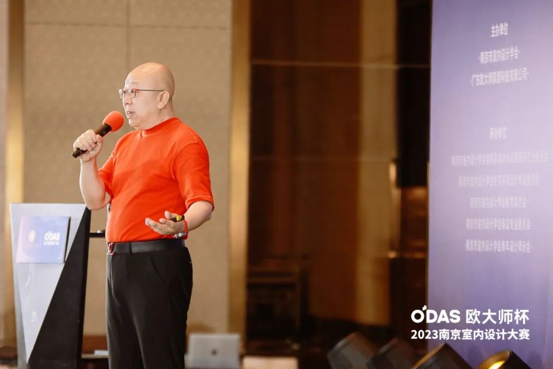 活动伊始,受高祥生理事长委托,南京市室内设计学会执行会长陈国欢对现场所有人的到来表示诚挚的欢迎和感谢。赛事已历经十多年的更迭与演变,诸多优秀设计案例涌现,与城市气韵特质的融合,展现了独特的设计力和设计精神,锋芒尽显,成为设计南京的重要范式。非常荣幸本届赛事能够与欧大师达成紧密合作,势必能够铺展开南京设计更加精彩的篇章。