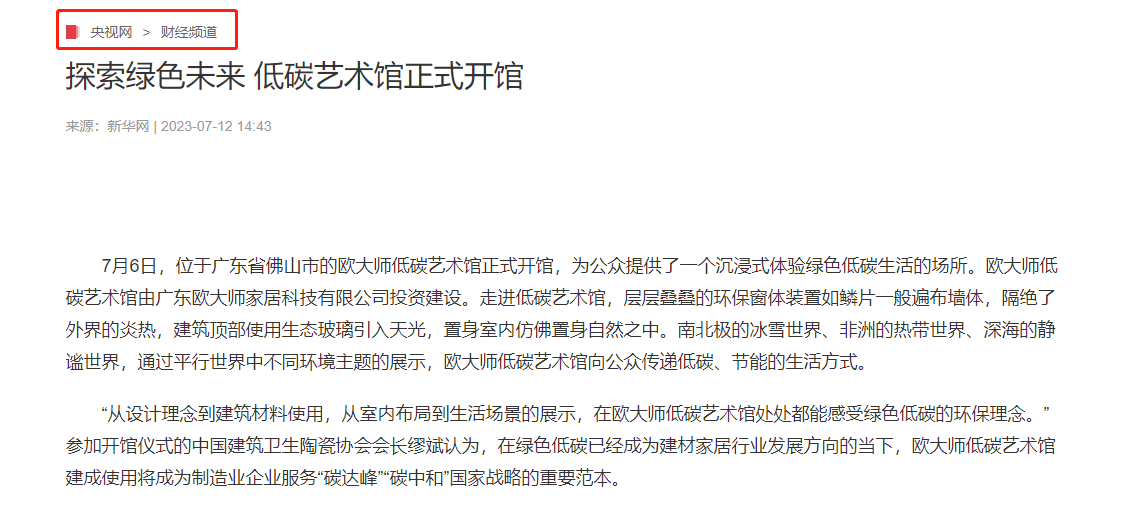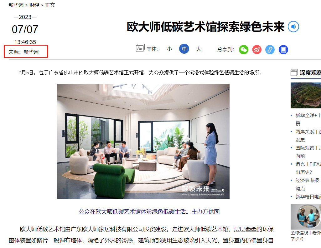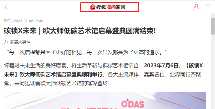 多家中央媒体将笔尖、镜头对准此次欧大师低碳艺术馆启幕盛典,报道中指出,门窗已成为建筑节能的最大“漏洞”,同时也成了家庭能耗的“黑洞”。门窗的节能成为建筑节能的关键,门窗行业对于建筑的节能降碳工作至关重要。而欧大师隔热门窗正是在这样的背景下,主动承担社会责任,推动行业发展,同时助力国家“双碳”目标实现。