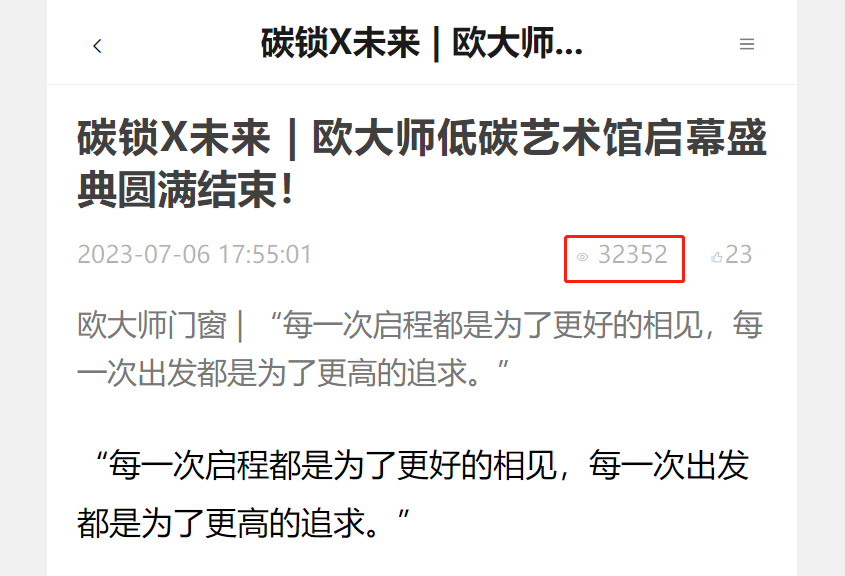 伴随着我国生态文明建设开启新阶段,国家乃至世界对低碳环保的要求越来越高,对门窗的隔热、环保节能的需求也越来越大。2023年7月6日,欧大师低碳艺术馆盛大启幕,这不仅是欧大师隔热门窗品牌的全新亮相,也是门窗行业向“双碳”目标迈出的崭新一步。