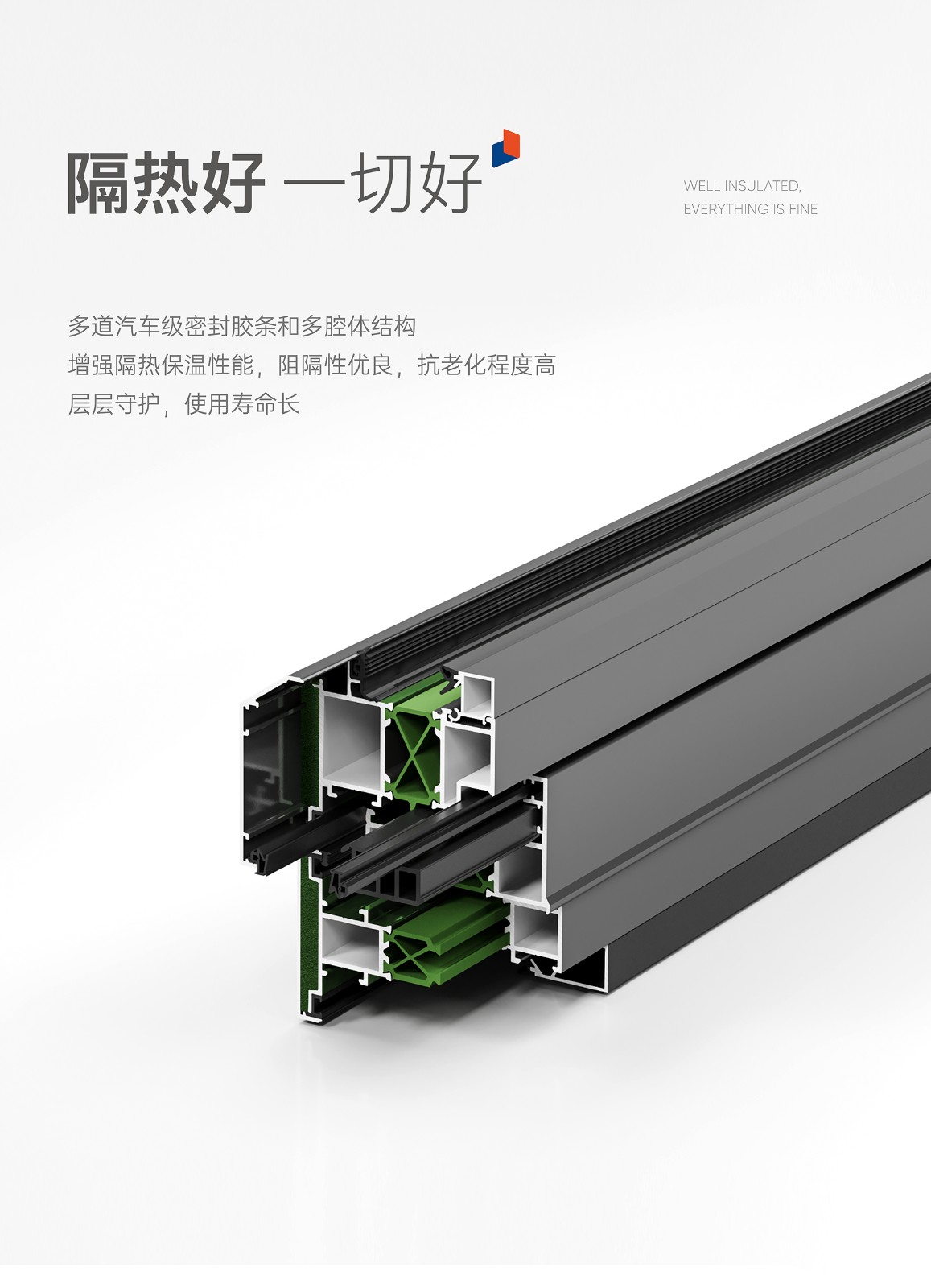 | 隔热型材: | 多腔体军工绿X型、24.8MM隔热条 |