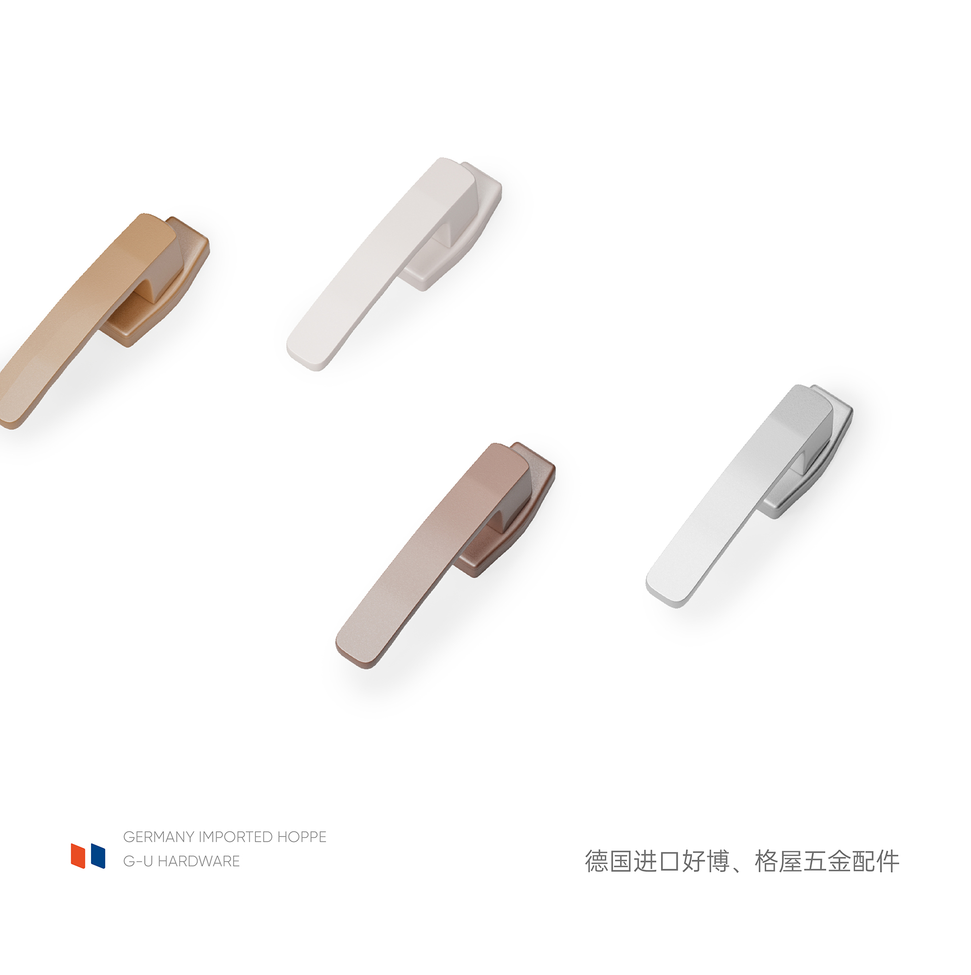 | 标配五金: | 德国HOPPE执手,德国格屋五金,标配内开内倒 |